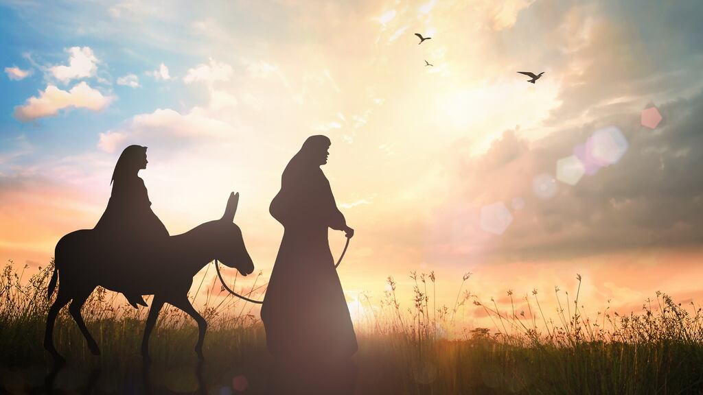 Mhothaigh Seosamh go raibh a aghaidh ar nós mála uisce folamh, línte gearrtha faoina shúile ón taisteal gan chrích, a chraiceann chomh tirim le cailc, a bheola á gcogaint aige de dheasca íota tarta. B’fhearr an scéal do Mhuire é, óir bhí caille ag clúdach a haghaidh á cosaint ó theas na gréine, agus ní raibh le feiscint ach a dhá súil dhonna tríd an bhfuinneog chaol sin ar a ceann.