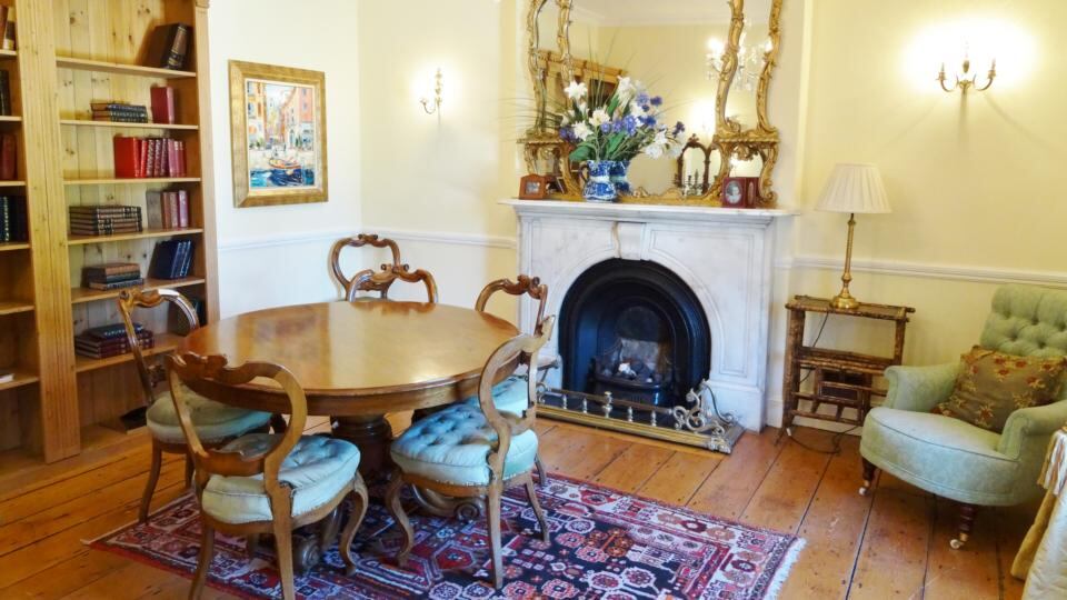 It is a double-fronted Georgian house, one storey at the front and two at the back, with a contemporary extension including a sunroom and conservatory behind. The house is now listed, though that probably doesn’t extend to preserving the uPVC windows at the rear, which mingle with the more lovely original wooden ones.